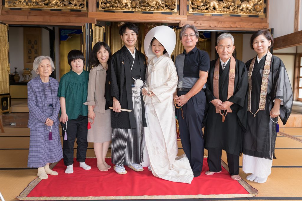ヒアリングを元にご迷惑でなければ、ご実家やおじいちゃんおばあちゃんのご自宅で、お着付けから見て頂く事を提案させて頂いたりします。その場合、こちらから衣装などを持ち込みますので、お二人やご親族の方は、ご自宅で待って頂ければ大丈夫です!もちろんスタジオでお着付けして、ご実家や施設にお伺いするパターンもあります。