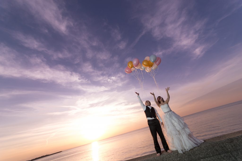 この日の撮影も綺麗な夕日を見ながら、お二人ご希望のバルーンリリースも撮影出来てラストまで終えることができました!