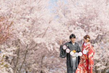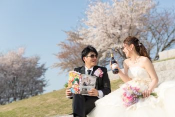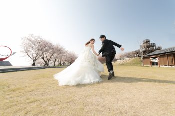 桜だけでなく、芝生の広場もあるのでドレス撮影はそちらで…