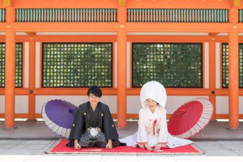 色打掛とはがらりと雰囲気を変えた綿帽子は写真で見ても変化があって良いですね☆