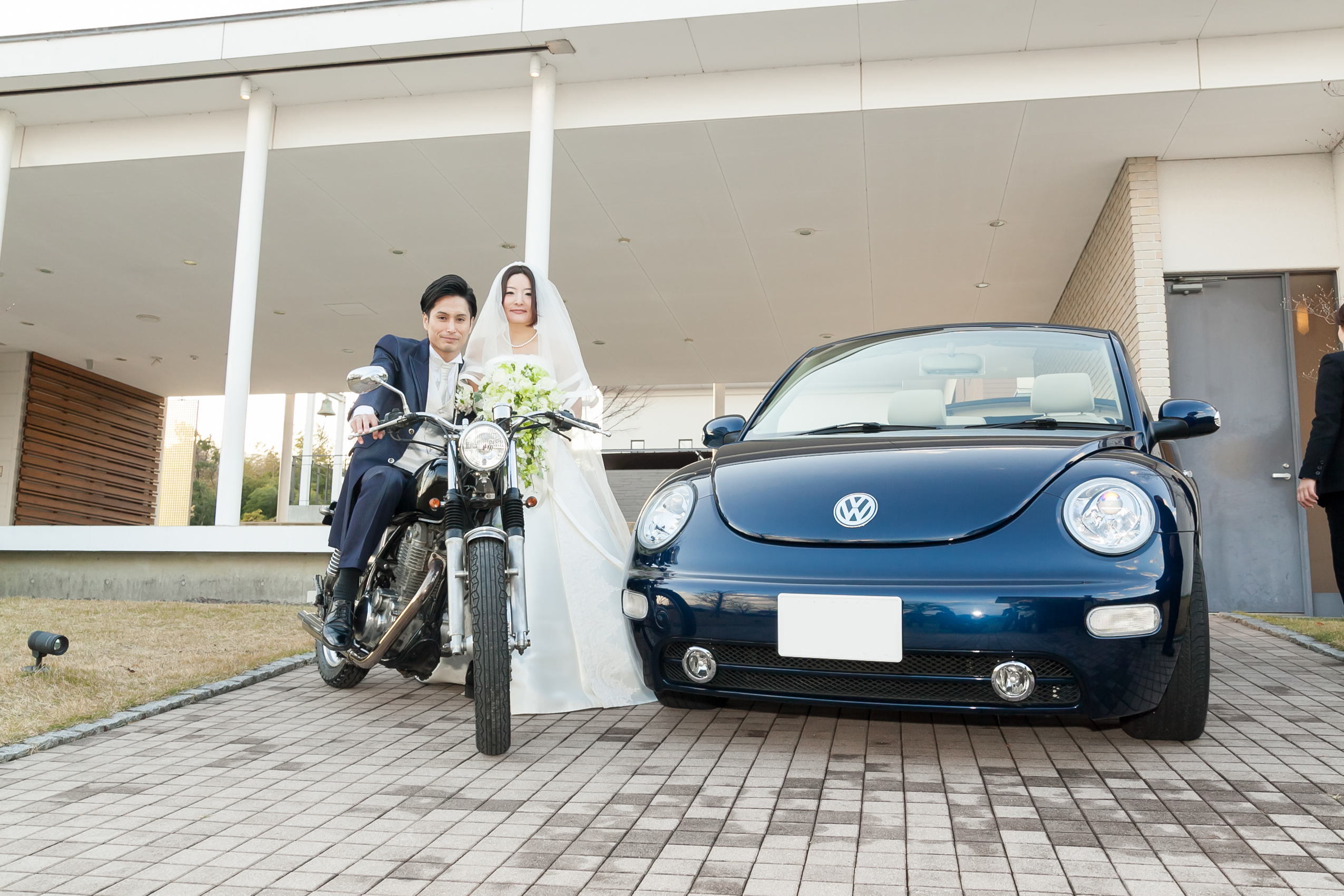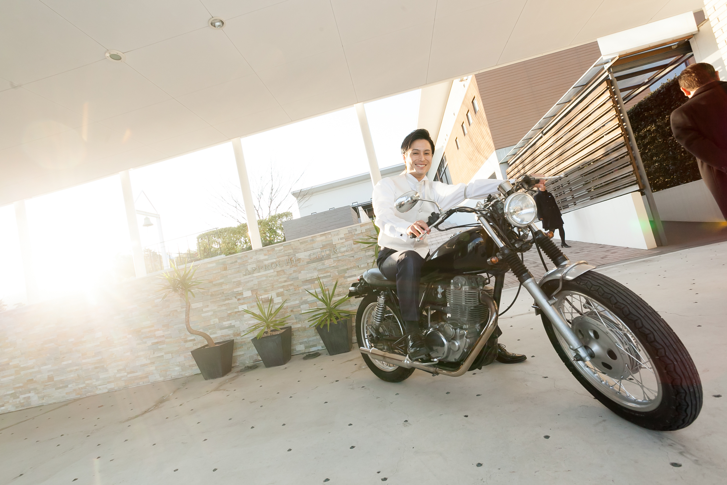 お二人は、前撮りをしていないので挙式前に前撮り風の撮影にバイク、車を入れて下さいとご要望いただきました。