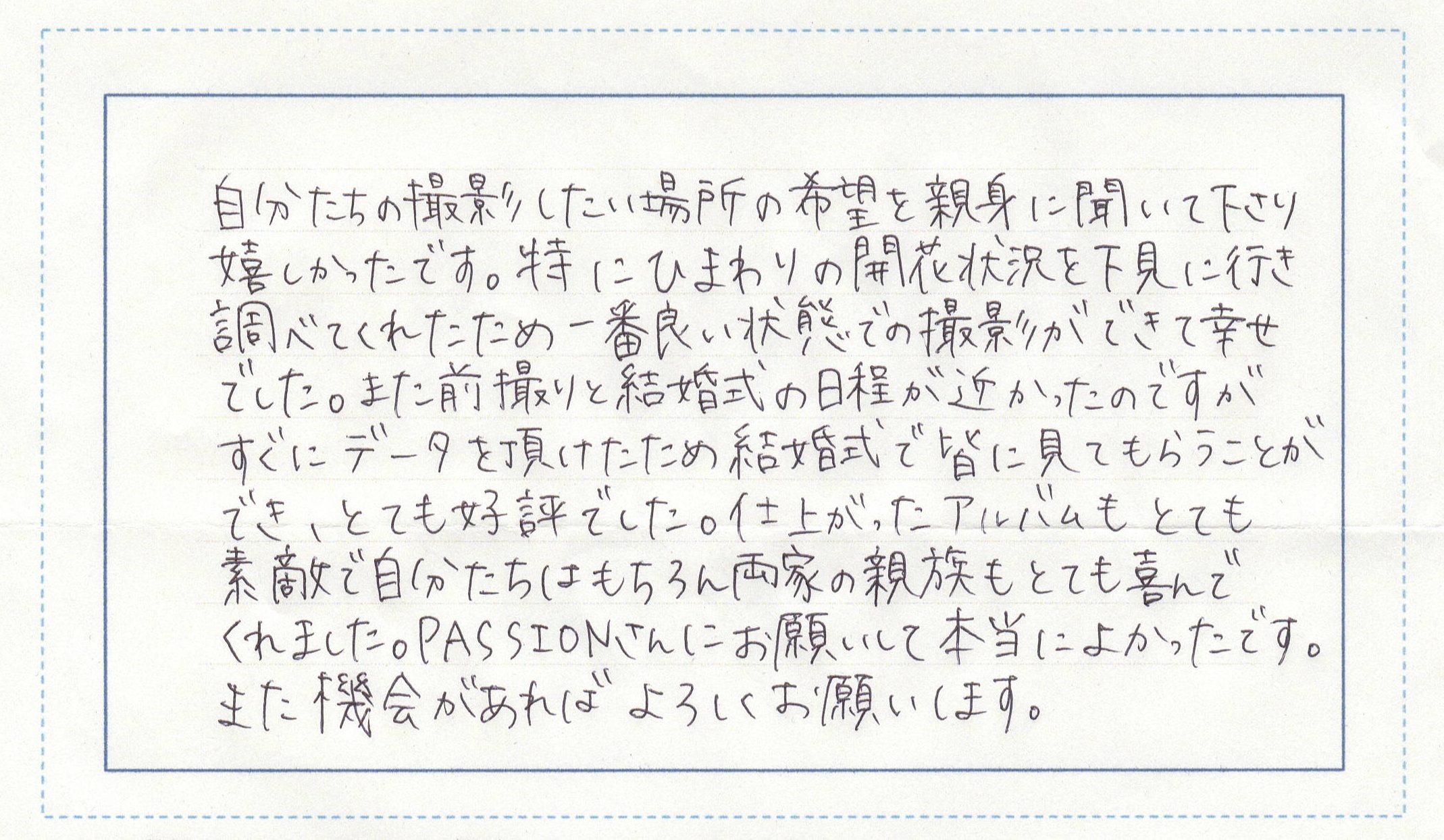 PASSONさんにお願いして本当によかったです。
