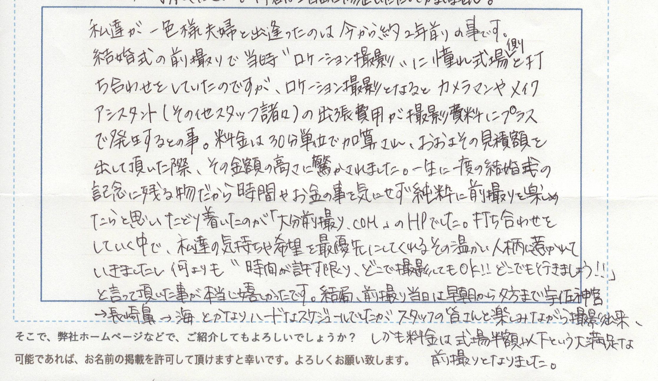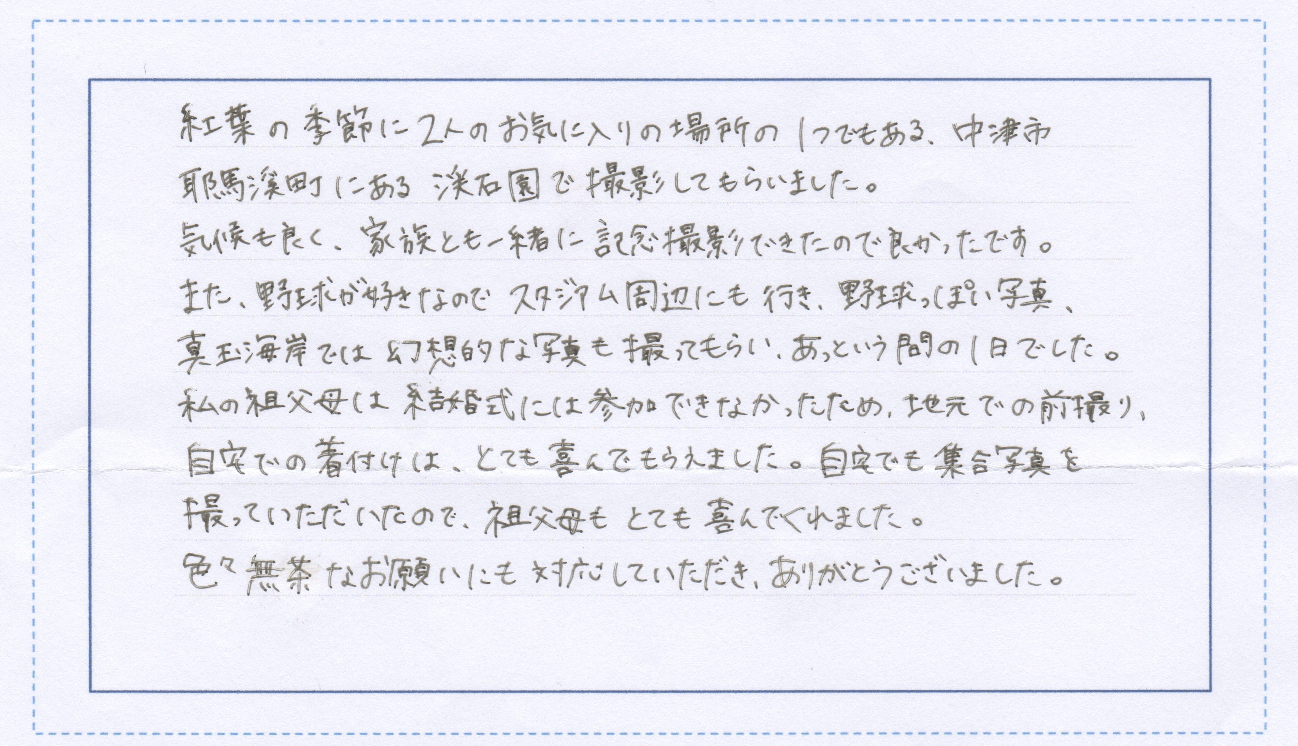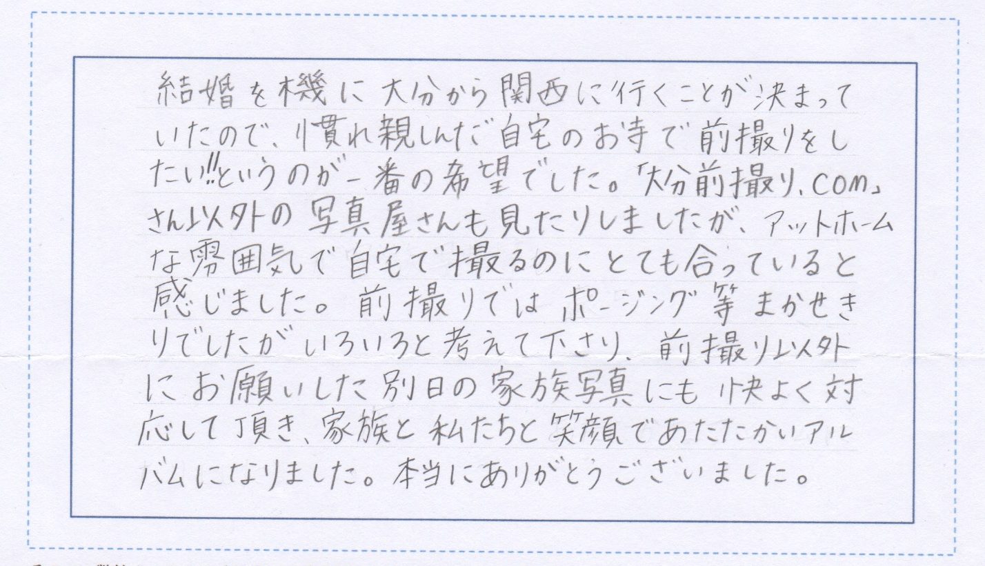 大分前撮り.comに寄せられた直筆の声をご紹介!