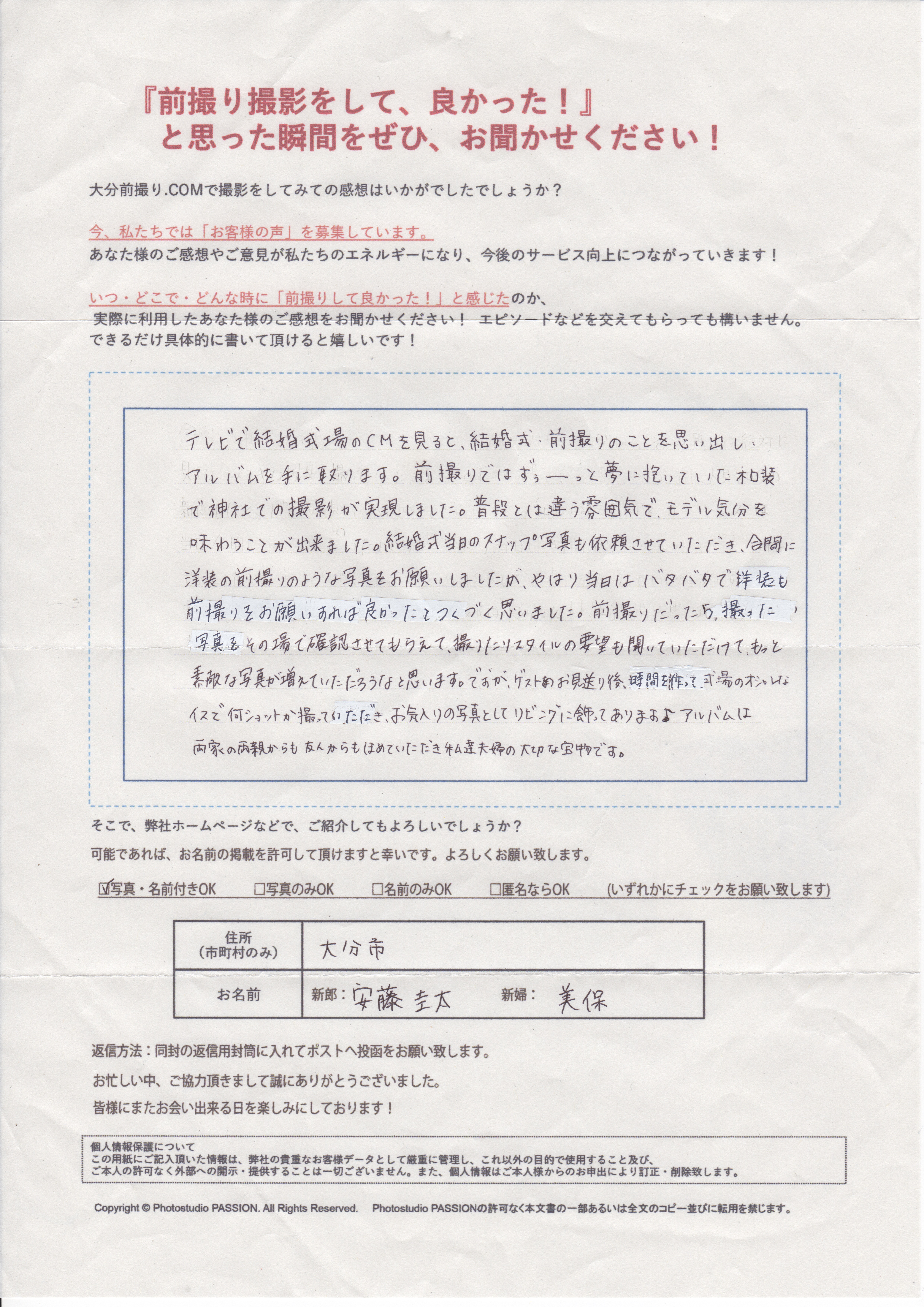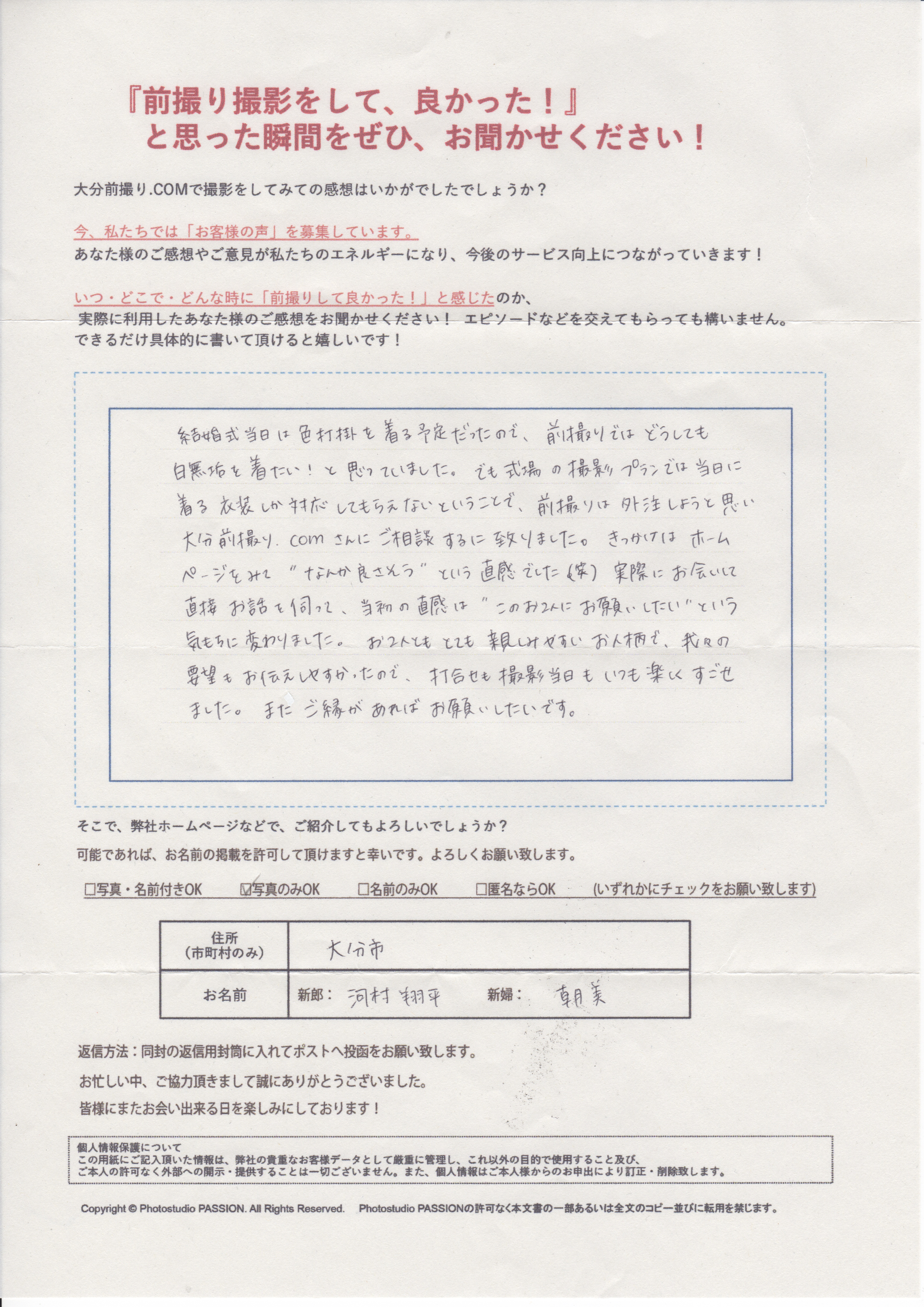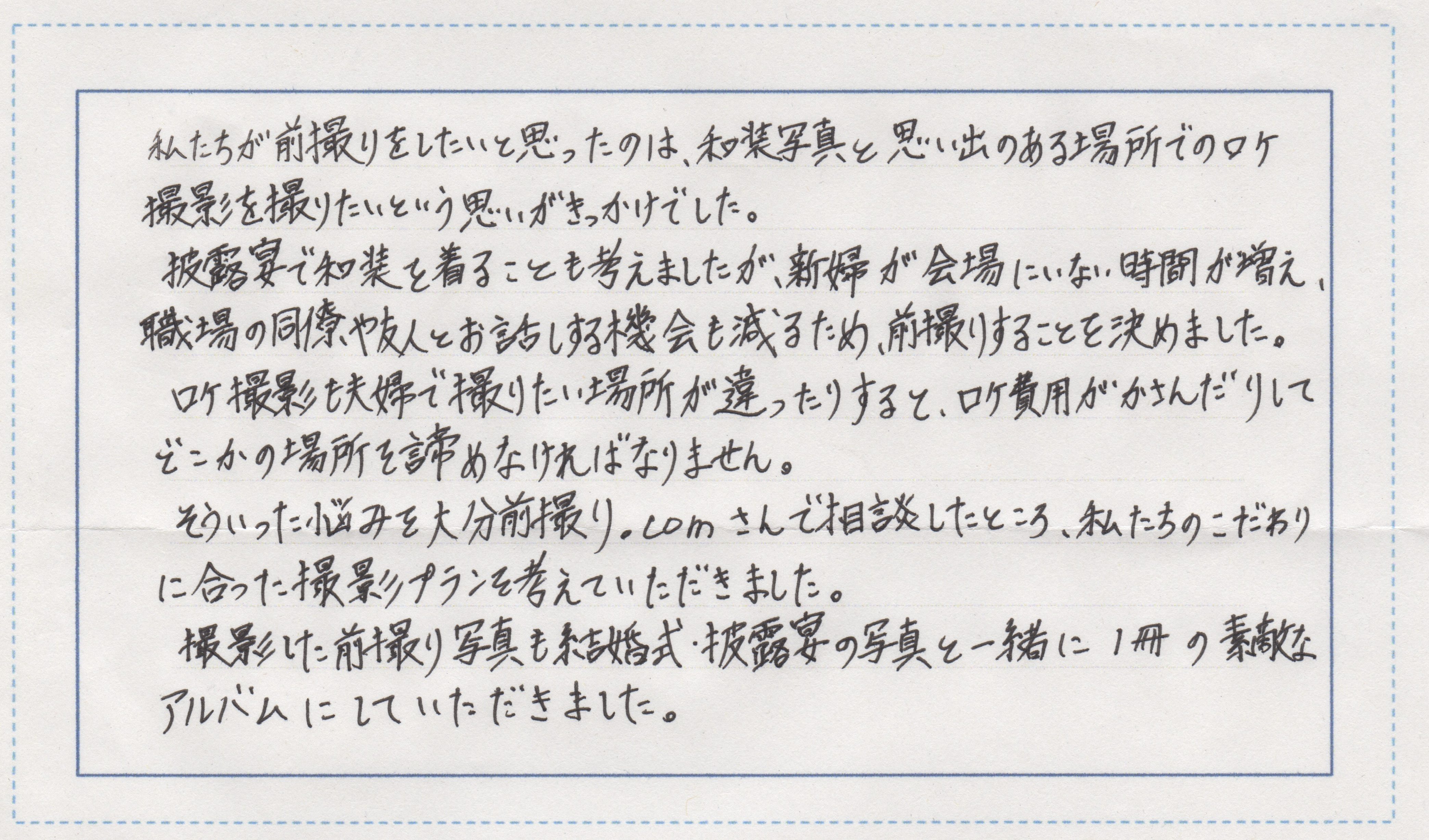 大分前撮り.comに寄せられた直筆の声をご紹介!