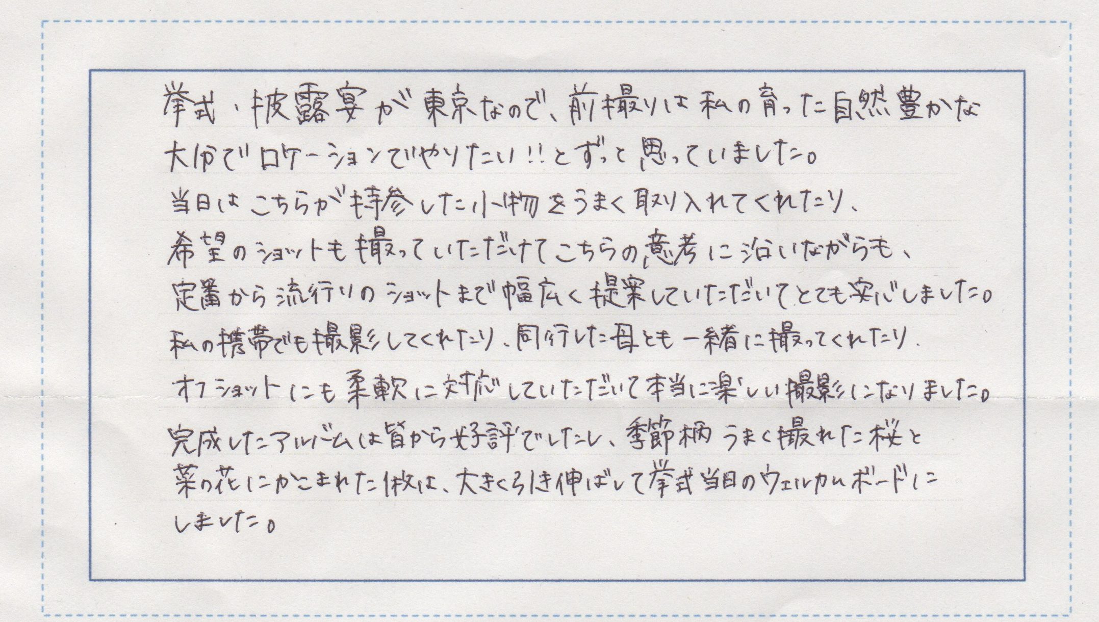 大分前撮り.comに寄せられた直筆の声をご紹介!